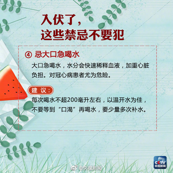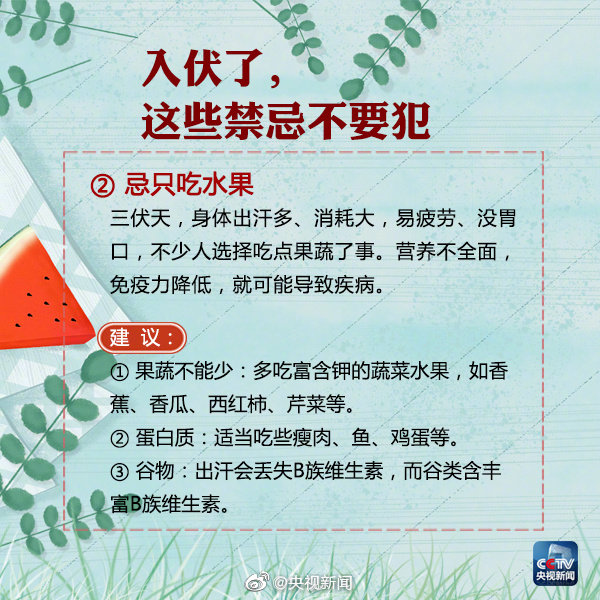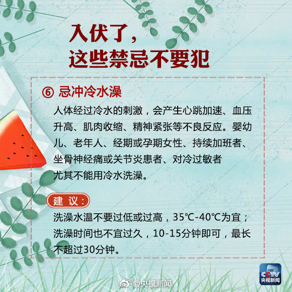 今年的“三伏天”,7月12日至7月21日為“初伏”,7月22日至8月10日為“中伏”,8月11日至8月20日為“末伏”,共計(jì)40天。 按農(nóng)歷計(jì)算,每年夏至后的第三個(gè)庚日入伏,立秋后的第二個(gè)庚日出伏。頭伏和末伏的長度是固定的,均為10天。中伏長度則由“立秋”節(jié)氣與其后首個(gè)庚日之間的間隔決定。 因此,中伏可能是10天,也可能是20天,對(duì)應(yīng)的就有30天的“普通版”三伏和40天的“豪華版”三伏。 7月12日開始進(jìn)入三伏天,“三伏天”是一年中最熱的時(shí)節(jié),今年還是“40天加長版三伏天”,大家注意做好防暑降溫措施的同時(shí),為健康,這9條禁忌不要犯! |