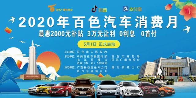 5月1日至30日,百色市人民政府主辦百色汽車消費(fèi)月活動(dòng),并于5月1日上午10:30,通過(guò)百色廣播電視臺(tái)、移動(dòng)和商務(wù)平臺(tái)、抖音等平臺(tái)現(xiàn)場(chǎng)直播啟動(dòng)儀式,市政府常務(wù)副市長(zhǎng)將化身主播拉開(kāi)活動(dòng)月序幕,推出特惠車限時(shí)秒殺等多重驚喜為活動(dòng)助興;顒(dòng)期間,購(gòu)車消費(fèi)者最高可享2000元補(bǔ)貼、10萬(wàn)元讓利、2000元油卡、9999公里充電卡、0首付、0利息等多重疊加優(yōu)惠,全市汽車銷售企業(yè)全部就地參加活動(dòng)。