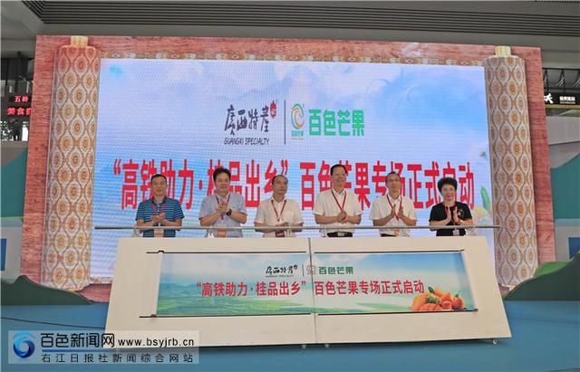 出席啟動儀式的領(lǐng)導(dǎo)共同開啟百色芒果專場活動。