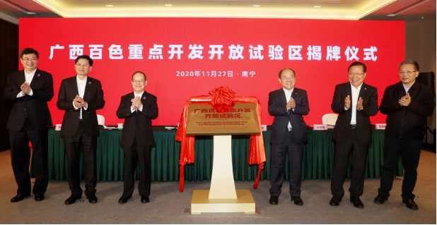 11月27日,廣西百色重點(diǎn)開發(fā)開放試驗(yàn)區(qū)建設(shè)推進(jìn)會(huì)在南寧舉行。國(guó)家發(fā)展改革委副主任、國(guó)家統(tǒng)計(jì)局局長(zhǎng)寧吉喆,自治區(qū)黨委書記、自治區(qū)人大常委會(huì)主任鹿心社出席會(huì)議并一同為廣西百色重點(diǎn)開發(fā)開放試驗(yàn)區(qū)揭牌。自治區(qū)黨委副書記、自治區(qū)代主席藍(lán)天立在會(huì)上致辭。 2020年11月23日,百色市政府辦公室印發(fā)《廣西百色重點(diǎn)開發(fā)開放試驗(yàn)區(qū)重點(diǎn)工程建設(shè)三年行動(dòng)計(jì)劃實(shí)施方案》(以下簡(jiǎn)稱《方案》),標(biāo)志試驗(yàn)區(qū)建設(shè)進(jìn)入實(shí)質(zhì)階段。 據(jù)悉,三年行動(dòng)計(jì)劃重點(diǎn)推進(jìn)項(xiàng)目共250個(gè),項(xiàng)目總投資10103億元,主要包含基礎(chǔ)設(shè)施、產(chǎn)業(yè)開發(fā)、智慧邊境城市、社會(huì)民生、生態(tài)環(huán)保、興邊富民等6大類項(xiàng)目。三年行動(dòng)計(jì)劃實(shí)施完成后,實(shí)現(xiàn)開工建設(shè)項(xiàng)目204個(gè),部分竣工項(xiàng)目6個(gè),40個(gè)遠(yuǎn)期規(guī)劃的項(xiàng)目前期工作取得重大進(jìn)展。 《方案》提出,按照“一年見成效、兩年上臺(tái)階、三年大變樣”的工作要求,解放思想,敢闖敢試,銳意創(chuàng)新,加快推進(jìn)批百色試驗(yàn)區(qū)重點(diǎn)工程、重大項(xiàng)目建設(shè),全面開啟構(gòu)建開發(fā)開放發(fā)展新格局新征程。 |
