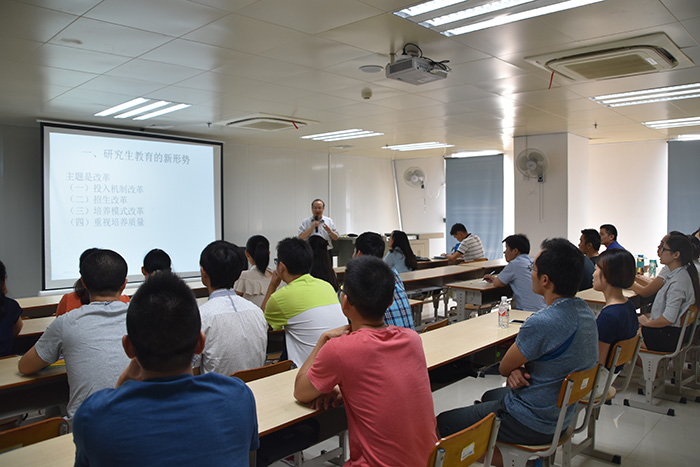 唐乾利副校長到現(xiàn)場指導(dǎo)工作 9月2日下午,我校2016級學(xué)術(shù)學(xué)位研究生入學(xué)報(bào)到工作在第二會議室進(jìn)行。唐乾利副校長親臨現(xiàn)場進(jìn)行工作指導(dǎo),要求研究生學(xué)院要認(rèn)真細(xì)致做好服務(wù)保障工作,幫助研究生新生盡快適應(yīng)新環(huán)境、新生活。他還與前來報(bào)到的同學(xué)們親切交談,并預(yù)祝他們在新的人生階段學(xué)有所成。 為使研究生新生盡快適應(yīng)新環(huán)境,融入新集體,投入新生活,入學(xué)報(bào)到完成后,研究生學(xué)院安排了一系列的入學(xué)教育活動。 研究生學(xué)習(xí)階段第一課堂現(xiàn)場 9月3日上午,研究生學(xué)院黃贊松院長為全體新生上了研究生學(xué)習(xí)階段第一課。圍繞研究生教育新形勢、醫(yī)學(xué)學(xué)術(shù)碩士的培養(yǎng)要求、拒絕學(xué)術(shù)不端、醫(yī)學(xué)知識架構(gòu)、如何有效學(xué)習(xí)臨床醫(yī)學(xué)及開展科學(xué)研究等方面進(jìn)行逐一講解。結(jié)合《醫(yī)師資格考試報(bào)名資格規(guī)定(2014版)》、《關(guān)于醫(yī)教協(xié)同深化臨床醫(yī)學(xué)人才培養(yǎng)改革的意見》等國家文件,黃院長詳細(xì)解讀了新形勢下醫(yī)學(xué)碩士的培養(yǎng)新要求,具體講解學(xué)術(shù)碩士的培養(yǎng)目標(biāo)與年限、課程設(shè)置與教學(xué)安排、教學(xué)實(shí)踐與學(xué)術(shù)活動要求、學(xué)位論文與申請學(xué)位的條件。 黃贊松院長要求同學(xué)們一定要制定適合自己的學(xué)習(xí)研究計(jì)劃,注重學(xué)習(xí)與研究能力的培養(yǎng),平衡實(shí)踐與醫(yī)學(xué)理論學(xué)習(xí),構(gòu)建合理的知識體系。在學(xué)習(xí)與研究中,要秉承科學(xué)精神,堅(jiān)守學(xué)術(shù)道德,堅(jiān)決拒絕學(xué)術(shù)不端行為。要學(xué)會學(xué)習(xí)、學(xué)會思考、學(xué)會做人、學(xué)會做事、學(xué)會思考。最后,黃院長送上“嚴(yán)格要求自己,砥礪品行,提升自我,完善人格修養(yǎng);嚴(yán)謹(jǐn)為學(xué),掌握方法,提升專業(yè)素養(yǎng);注重實(shí)踐,敢于創(chuàng)新,徳才全面發(fā)展”的寄語,祝福同學(xué)們在未來的三年學(xué)習(xí)生活中,奮發(fā)進(jìn)取,學(xué)業(yè)有成。 課程結(jié)束后,2016級學(xué)術(shù)學(xué)位研究生全體到科學(xué)實(shí)驗(yàn)中心參觀,進(jìn)一步熟悉未來的研究環(huán)境。(文/葉瑞權(quán) 大通社記者 林佳媚 韋金雙 圖/葉瑞權(quán) 大通社記者闕銘 編輯/黃宏春 審稿/趙駿耀) |