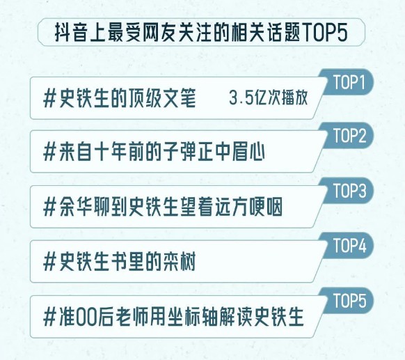此外,因讀者的書評抖音上衍生出“子彈文學”,網(wǎng)友在1.5億次話題播放中領(lǐng)略史鐵生的文筆。